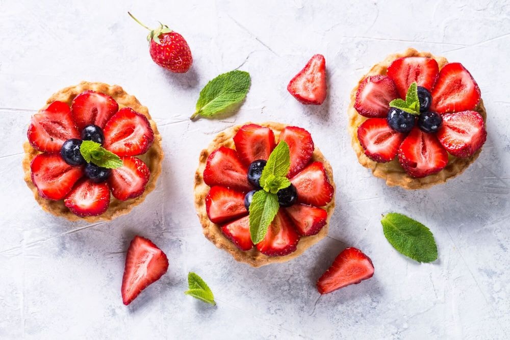 Das köstliche Törtchen ist eigentlich ein tortenartiges Dessert. Aber Tartolet ist eine Mini-Version der Tarte. Wie eine Tarte hat es eine offene Oberseite und eine Cremefüllung im Inneren. Da es in Formen zubereitet wird, wird es normalerweise in Formen für Einzelportionen gebacken. Es handelt sich um eine Art Kuchen, der mit Obst zubereitet wird. Ungedeckt kochen.